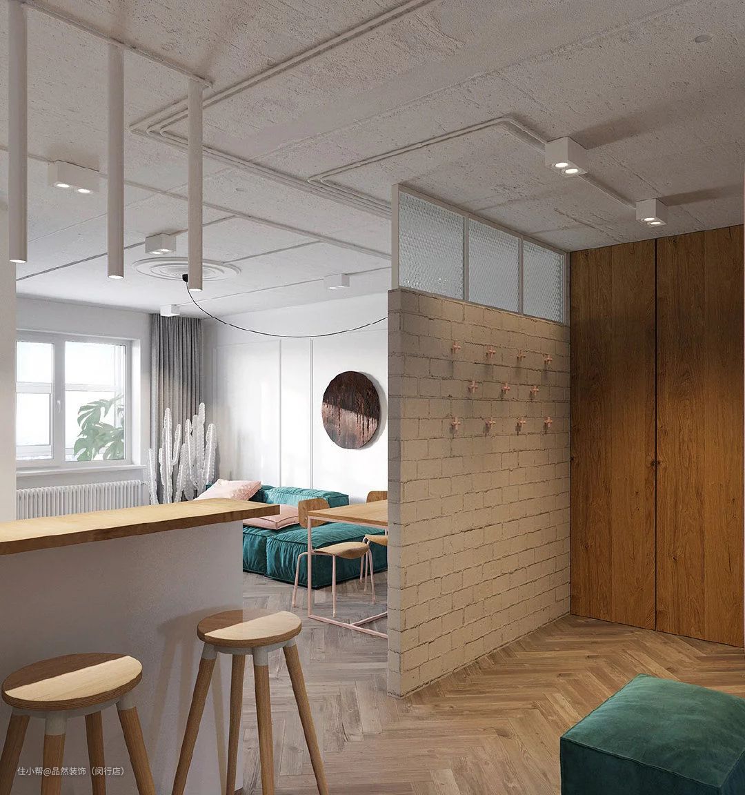 顶天立地的隔断鞋柜收纳空间十分丰富,而半墙半鞋柜的隔断方式在增加玄关私密感、空间感的同时,也不会让玄关因为封闭显得狭窄逼仄。