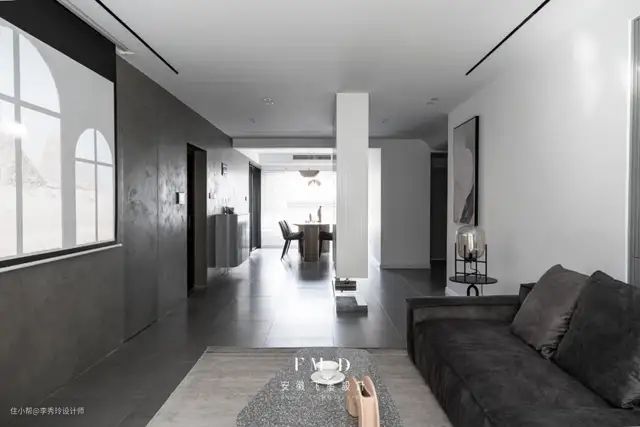 横梁与墙面一起做半拱门造型,可以将视觉重心从横梁转变为拱门,且设计感贼强。