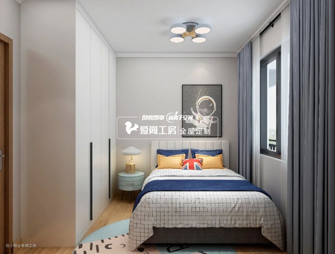 次卧是留给爸妈的房间,俩老偶尔会过来小住,整体设计以简约实用为主。