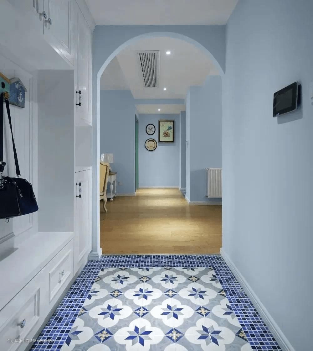 可以在横梁这部分做一扇拱门,不仅能区分出生活区,又能隐藏横梁,但是这种做法比较适合大空间。如果空间过小,可以只在横梁处做一个隐藏式的拱形横梁,也能起到弱化横梁的效果。