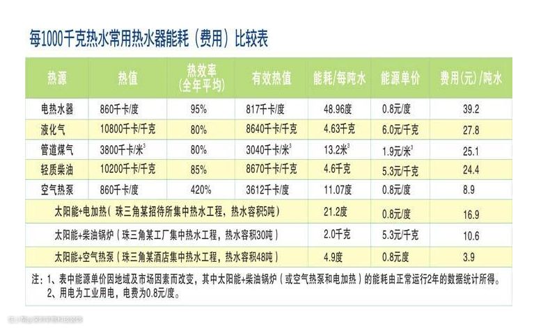 若居住人口较多,且符合使用条件的,可考虑大容量的空气能和太阳能,长期支出更划算。