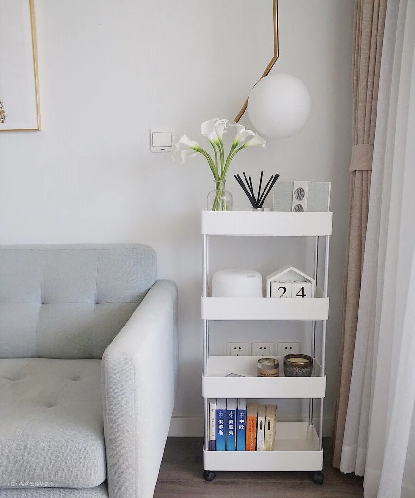 家中总会有一些直角空间,放不下什么大东西,但是空着有浪费空间。想要保持书桌的整洁,高效工作;洗衣机旁、冰箱旁的小缝隙等经常被忽略,选择一款尺寸和高度适合的小推车,缝隙也能被完美利用啦。