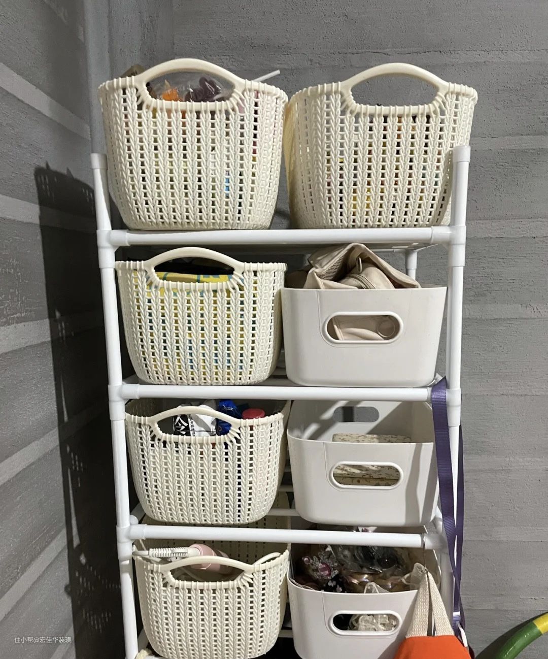 家里形状各异的杂物,小小的东西如果是随手放的话找起来如同大海捞针,在收纳篮中放好就可以集中收纳,化繁为简,方便拿取。收纳筐可以进行物品的分类收纳,如果杂物存于高处的花,还可以选择带有把手的收纳筐会更加方便。