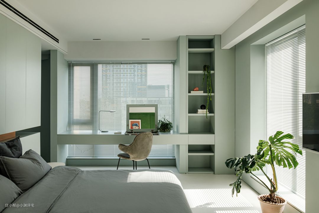 和封闭式收纳空间相比,它没有了柜门的遮挡,收纳空间更大。和普通的开放式收纳空间相比,它深嵌在墙里,外面与墙面平齐,对空间的占用更少。