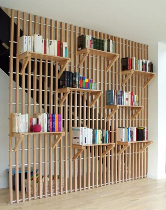 木格栅相信大家都不陌生,用作楼梯护栏造型相当好看,一根根细细长长的木条组合在一起,具有非常好的延伸视觉效果。朋友别出心裁,挺普通一隔断他给加上了块隔板,直接点亮了实用技能点,不仅能保护孩子的安全,而且让家里多出了个书架,真正做到美观实用兼具。