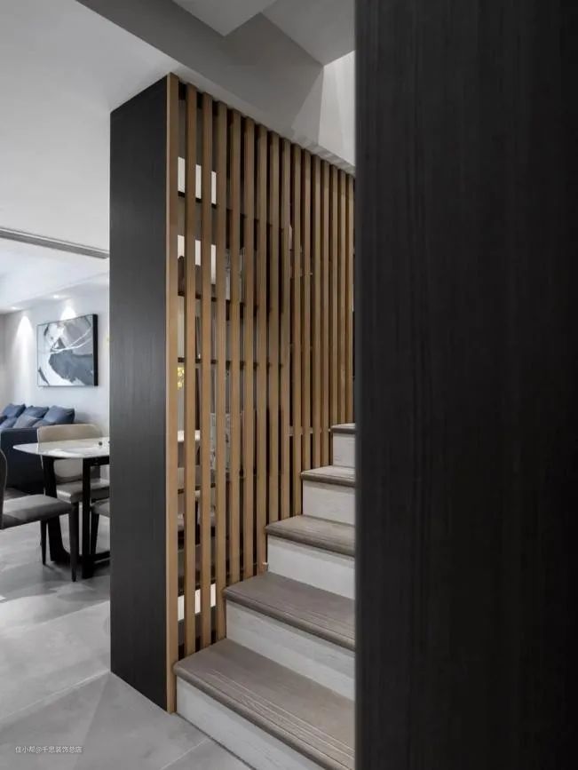 虽然悬空楼梯很流行,看上去美观度也更高,但毕竟是楼梯,有着一定高度,还是加上个护栏比较好,要是家里有小孩上下楼也更安全。当然,这只是个基本操作,真正抢眼的还在后面呢。