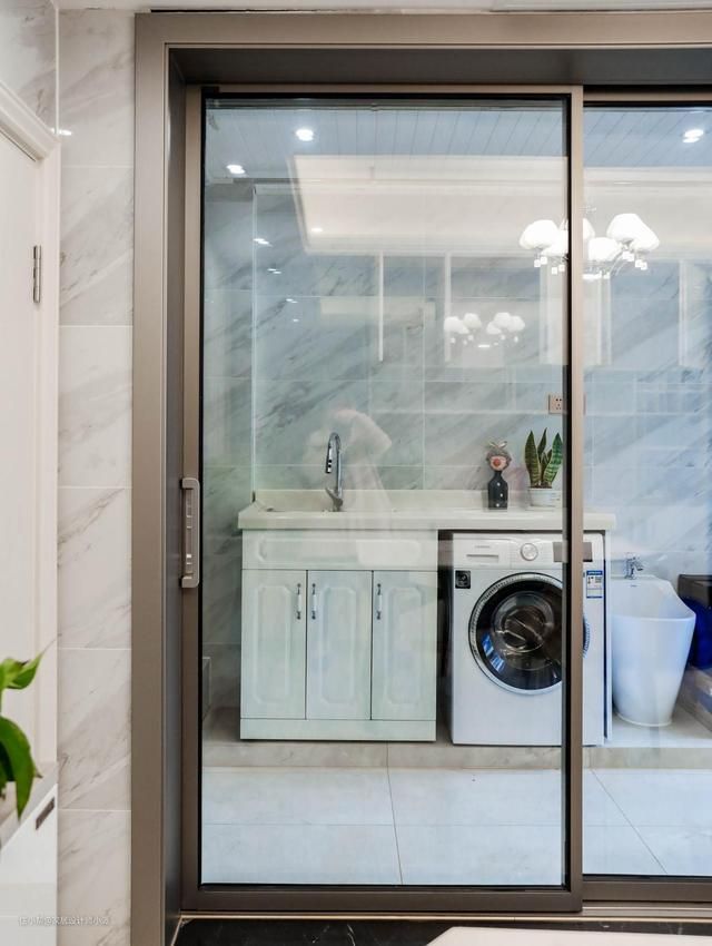 但就算是这样,也不能绝对地说哪种更好看,有些人认为没有了下轨道,瓷砖通铺更加通透大气;也有些人觉得有了下轨道才有一种完整的门的感觉,或者有些家庭做了过门石,那样的话有没有轨道看得并不明显。