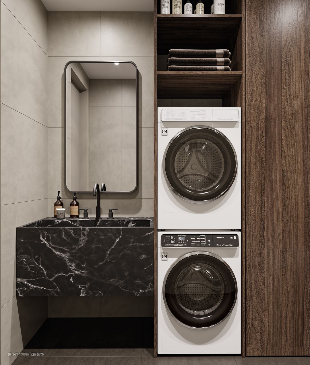 简洁实用的卫浴,看似冷淡无味,但处处考究,配合灯光的运用设计,营造舒适又充满质感的空间。