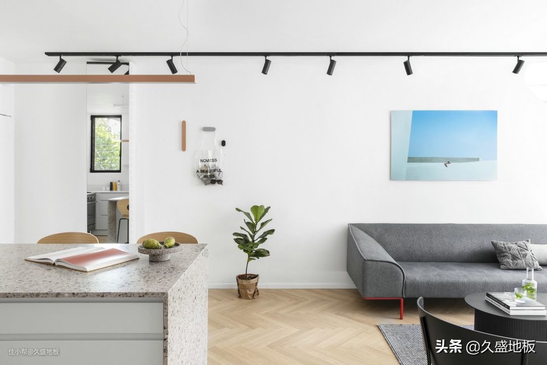 小居室可以选择小规格的人字拼花,空间会多些秀气,又不显得过于繁复。