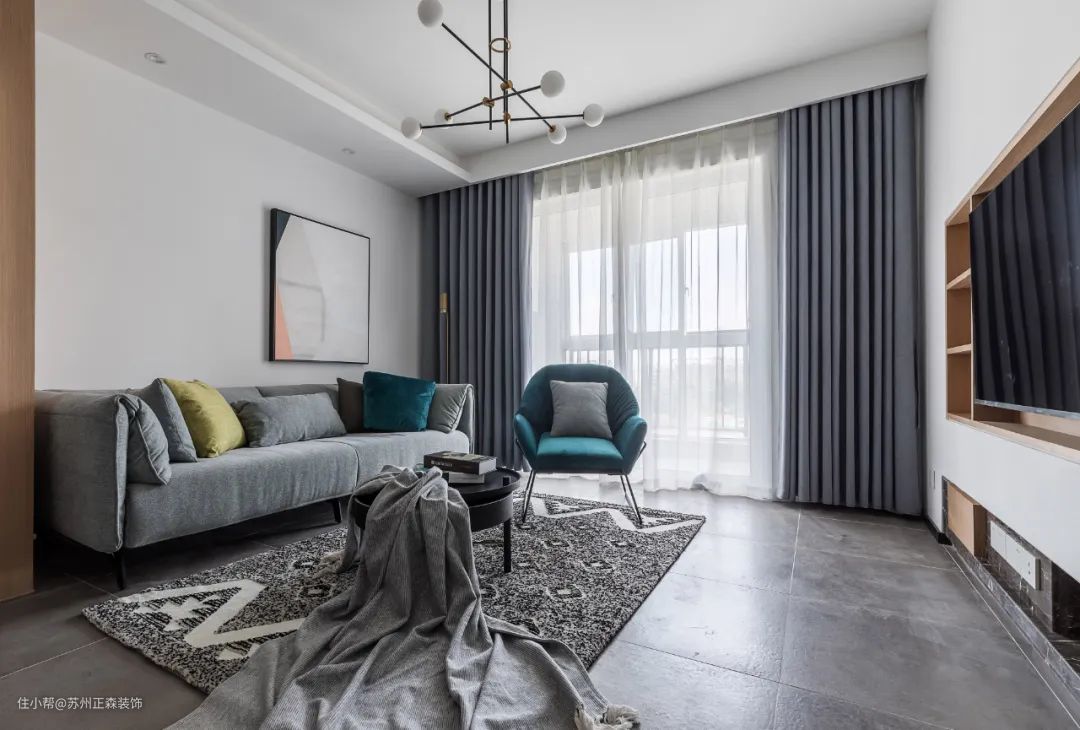 在现代简约风格装饰中,颜色的搭配主要是明快活力为主,白色、黑色、灰色、等色彩都是现代风格中较为常用的几种色调,更多使用一些纯净的色调及明亮的点缀色调进行搭配。