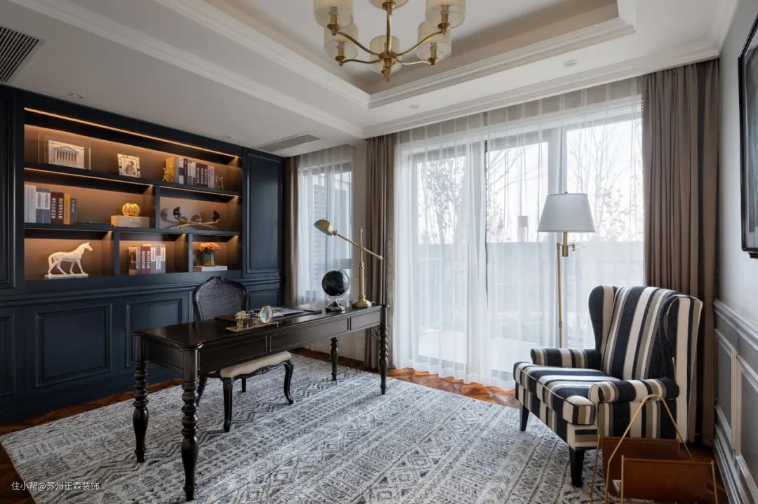 欧美风格设计底色大多采用白色或淡色为主,家具多用白色或深色,但一定要成系列,风格要统一。
