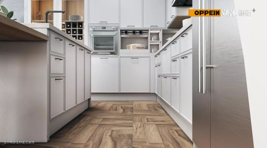 这样的布局设计可以减少重复的路线,提高下厨的效率。所以,厨房装修时最合适的安排顺序是冰箱、水槽、备餐区(切菜区)、灶台,一气呵成。