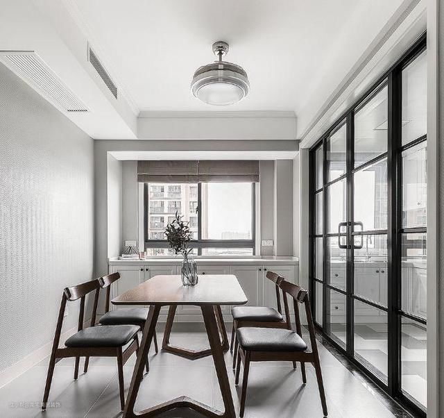 深色系地板与灰色墙面、白色家具对比更明显强烈。整体空间更加干净利落,或者直接黑白灰也是很好的搭配,要注意到颜色多少,将白色作为主色的话,其它颜色就要适当的减少。