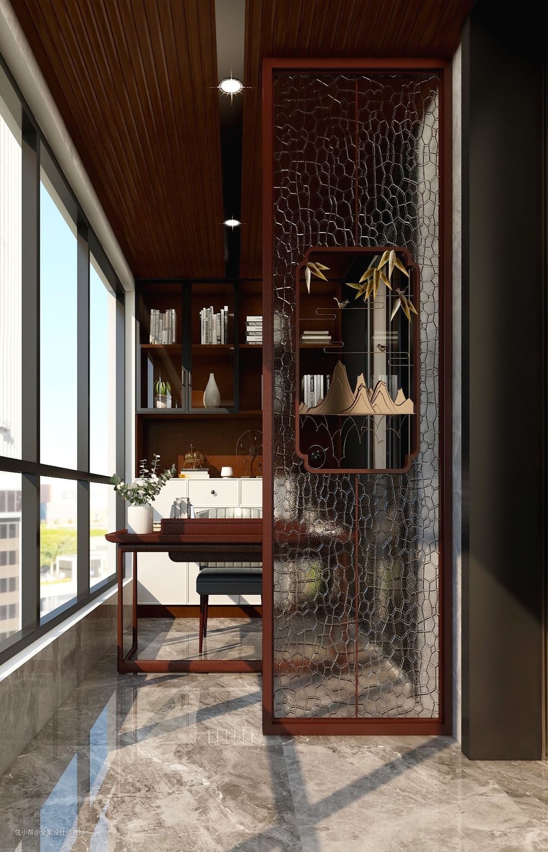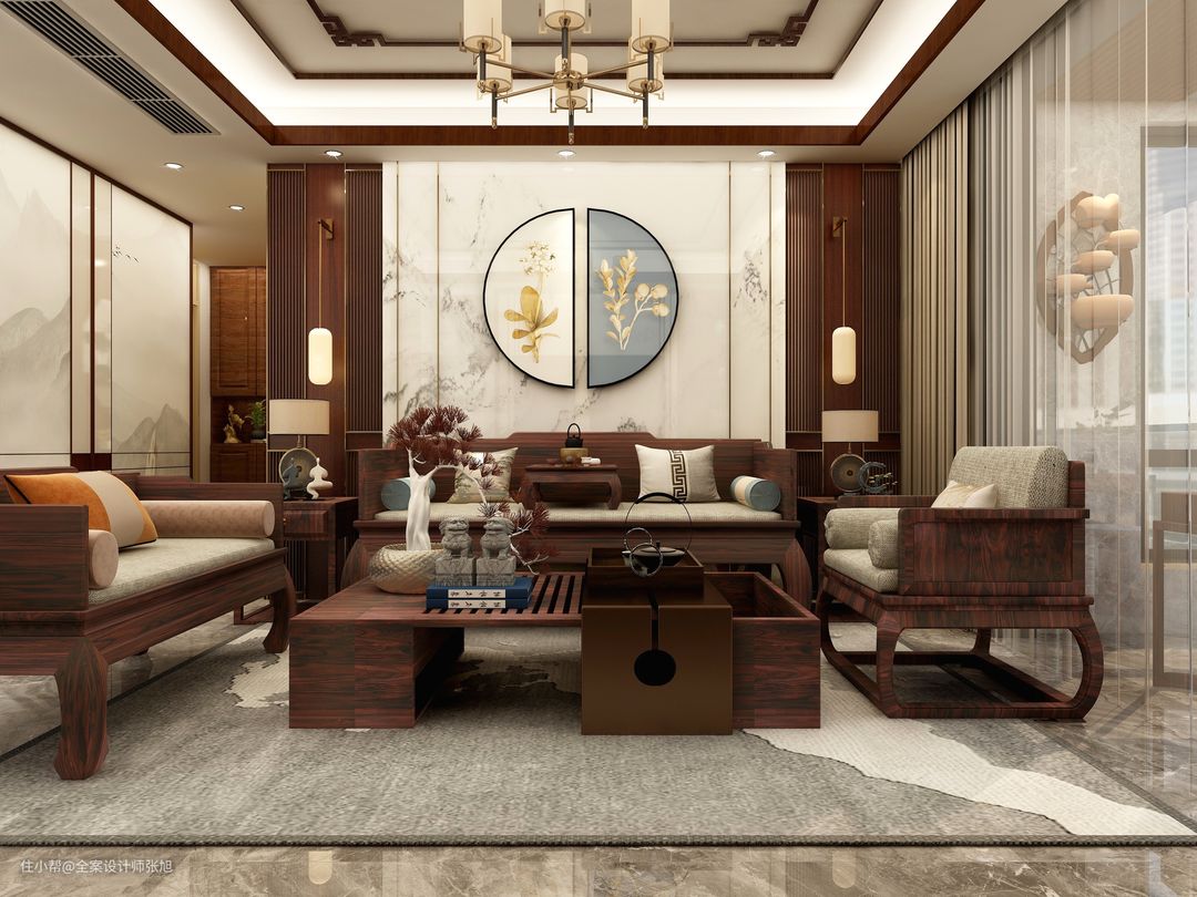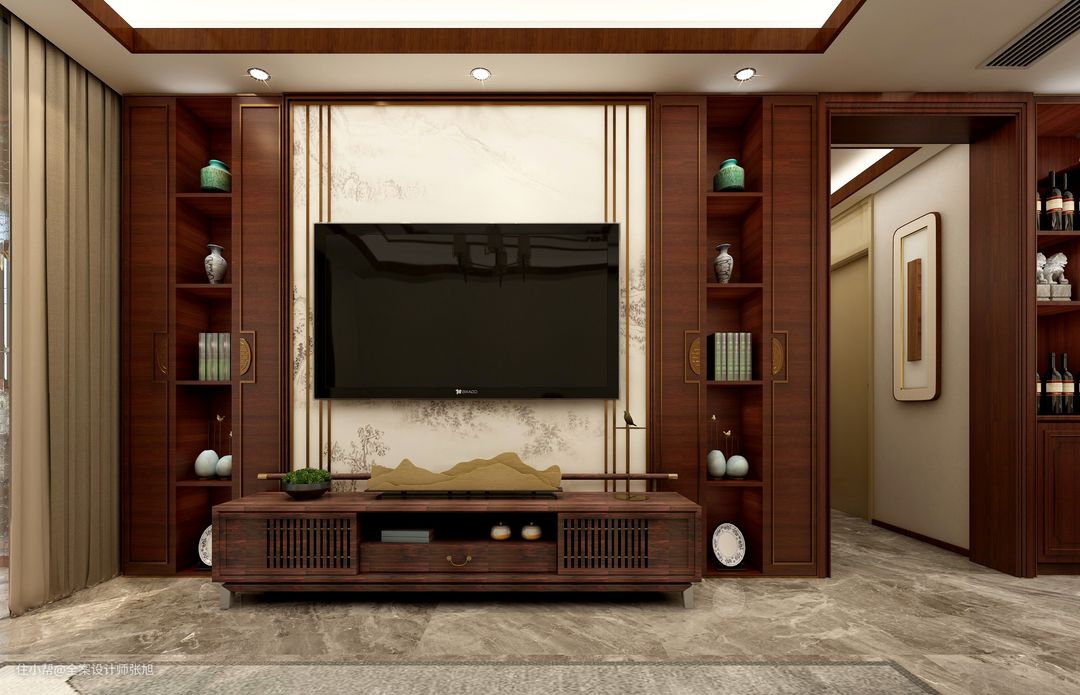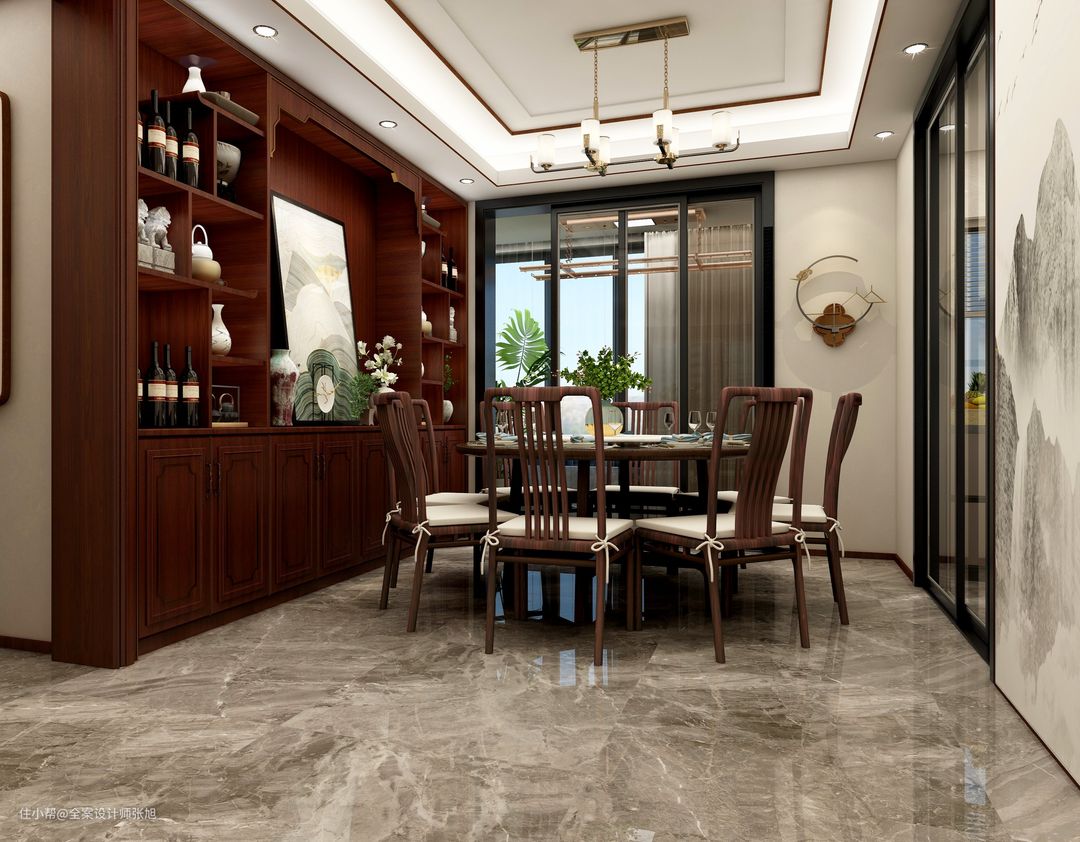160平米精装房3室一厅新中式时尚设计全案设计师张旭2021-10-14本方案是面积160平方3房精装房,整体风格为新中式,背景墙和酒柜一体化设计拥有超强的储物功能。阳台通过隔断区分空间,打造满满的沉稳感,业主一家3口家里经常来客人,增设创意玄关背景墙。全部房间都持续融入新中式元素。整体满足强大的家装实用性。