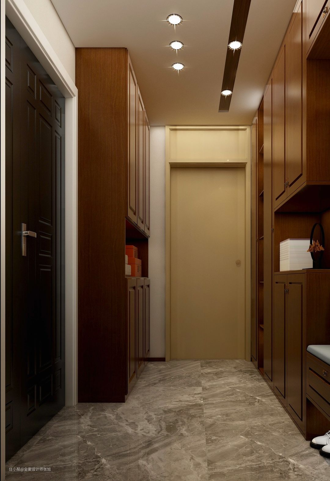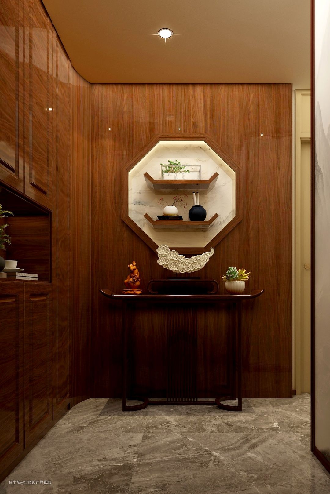 本方案是面积160平方3房精装房,整体风格为新中式,背景墙和酒柜一体化设计拥有超强的储物功能。阳台通过隔断区分空间,打造满满的沉稳感,业主一家3口家里经常来客人,增设创意玄关背景墙。全部房间都持续融入新中式元素。整体满足强大的家装实用性。