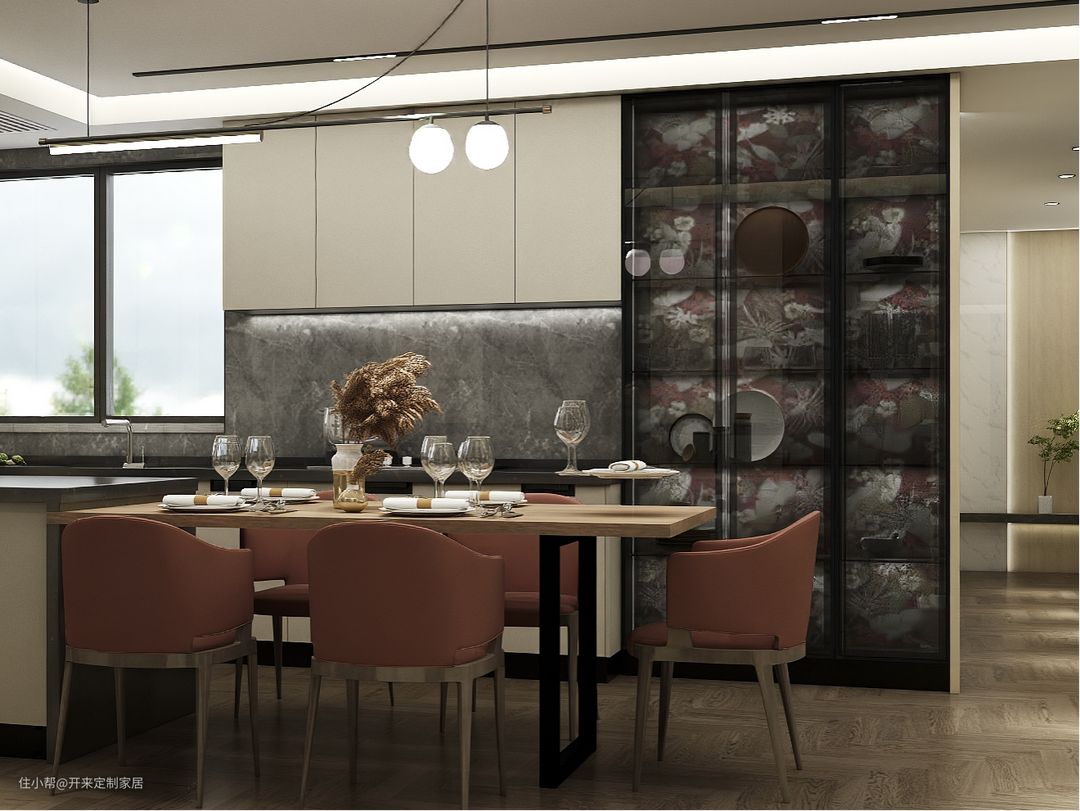 图四到图五,黑色边框玻璃门搭配石竹灰皮纹,白与黑的经典搭配更简约时尚——