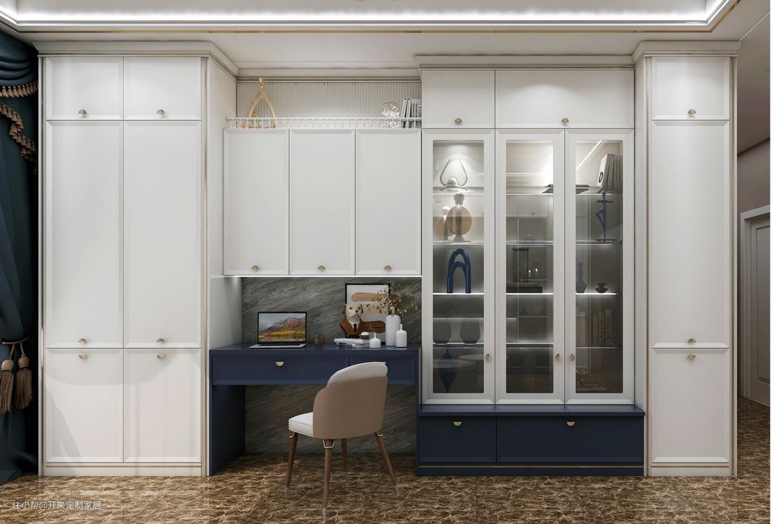 图六玻璃书柜结合静谧蓝法式波浪元素,端重高贵;