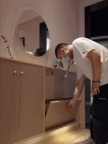 柜子的结构可以做成翻斗式,既能放足量的鞋,也不会在使用时占用太多空间。