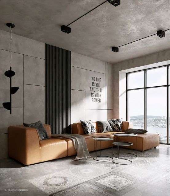 粗犷野性的工业风,有着不同于其他风格的个性表达,一般空间配色会比较深沉,会有水泥质感的纹理和红砖裸露等设计特色,所以沙发可以选择有一定光泽感的棕色皮质沙发。