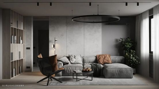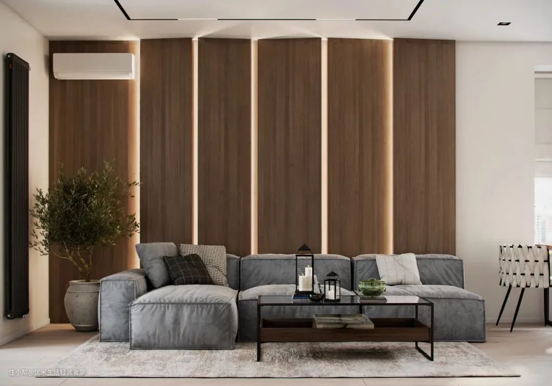 现代简约风格运用范围很广,现代元素简洁而又充满时尚感,深受年轻人的喜爱。在设计上以简洁的线条为主,常用黑白灰加木质的搭配再点缀一些鲜亮的颜色,沙发颜色则多以灰色为主。