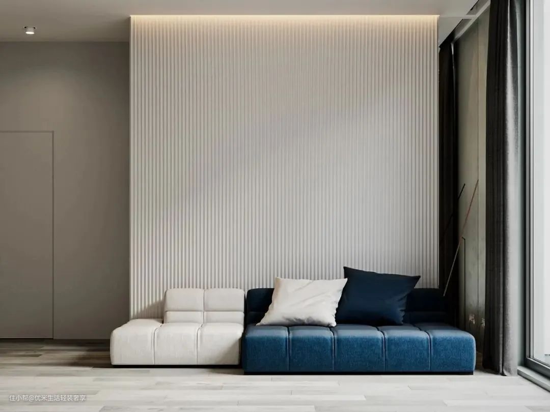 蓝色等;如果背景色比较抢眼,那么沙发则可以选择相对中性一些的颜色。