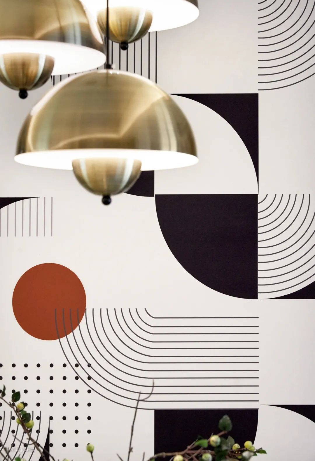 ▲半球形的金属吊灯,结合弧线的装饰画,让空间显得更加流畅高级而端庄。