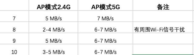 于是我们加了一个小米Wi-Fi放大器,再测试,2.4G达到了4-5MB/s,非常稳定。