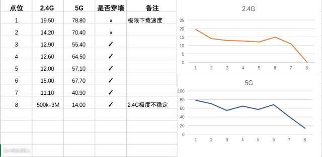 因为使用的两个设备均只支持2.4G,因此以上数据都是在2.4G网络环境下得出的结论。