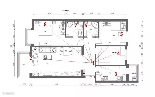 其中1号位是弱电箱的位置,主路由器就在1号点位。