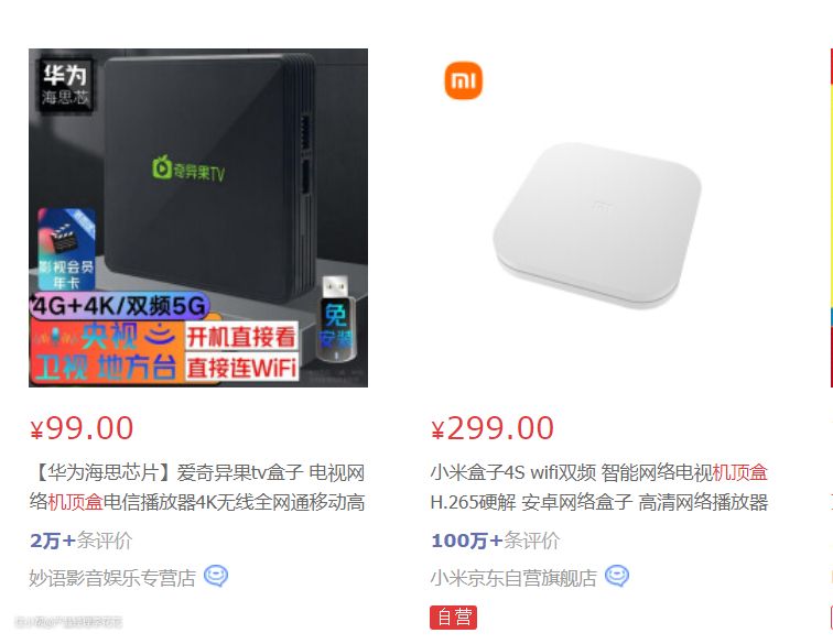 为了提升客厅的颜值,机顶盒的造型一定不能丑,而且看起来必须得有质感,我在京东搜的时候,发现排名靠前的某奇艺和某米的盒子都看起来太普通,甚至有点土,不过胜在便宜,如果只考虑价格因素,可以选择。