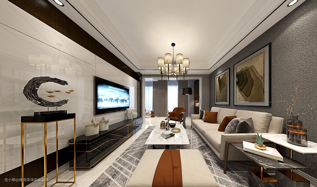 总的来说,轻奢电视背景墙,其实更考验家居的质感,从选材到色彩,都相当考究,材质方面以硬朗、张力十足的石材为主。色彩方面则倾向于高雅范十足,其表现在于简约、时尚且极具轻奢风情。另外,最重要的一点就是经典耐看,无论何时何地,都能触动我们最深层的渴望……