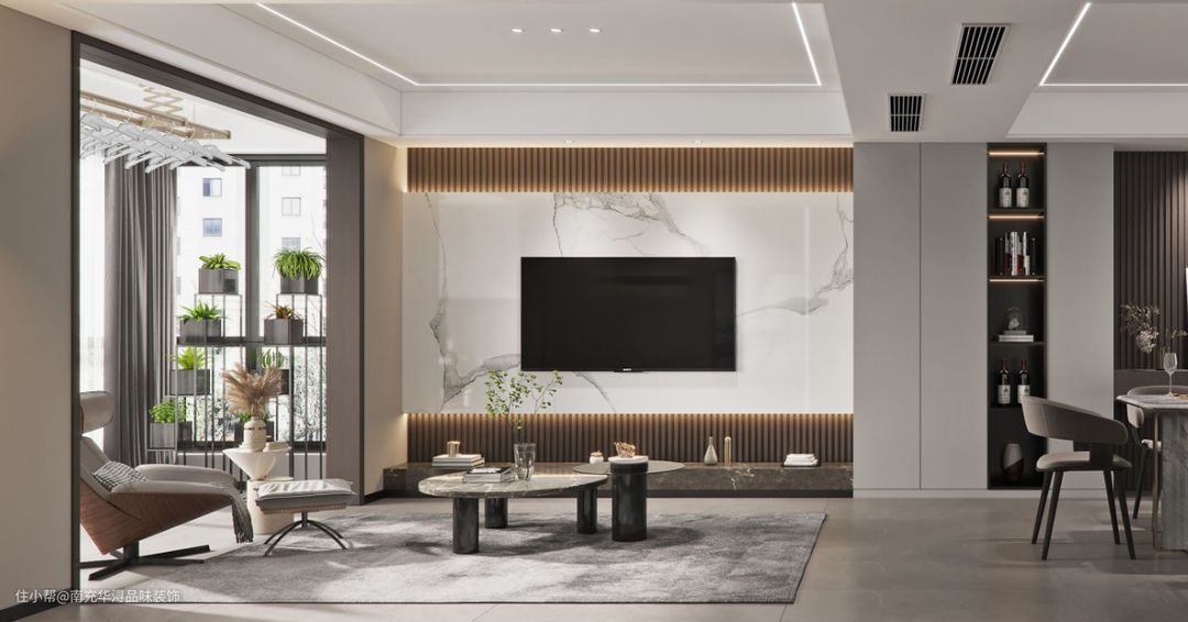电视背景墙 ┃ 轻奢风设计图,精简元素,简洁又高级