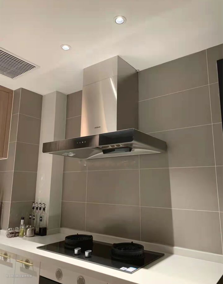 如果现场有条件可以把油烟机提前安装好,如果是没有条件,一定要把烟孔的位置精确的确定好,便于木工师傅把烟管的孔提前给开好。