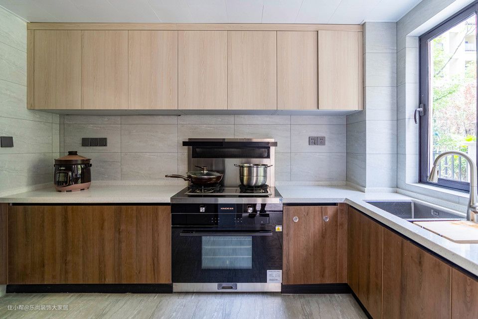 有防油污功能的亮光釉面砖易清洁,是厨房墙面砖不错的选择;厨房地砖可以用通体砖,防滑耐磨,也便于清洁。