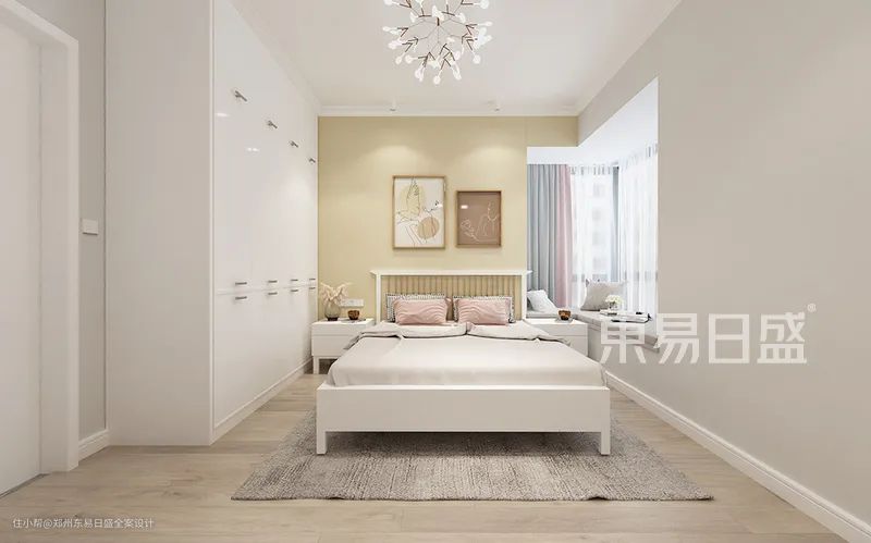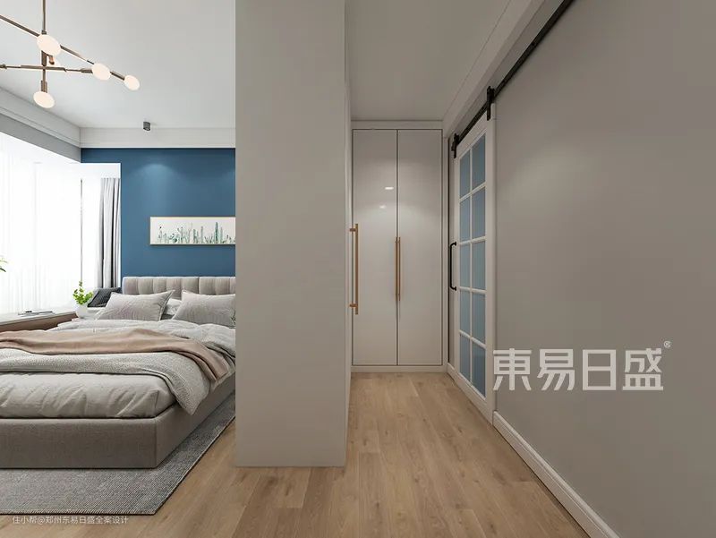 主卧是以奶咖色为主的背景墙点缀,整体色调清晰自然舒服,柜子也是空间的设计亮点!