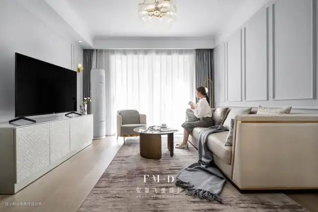 ① 在硬装上,电视与沙发背景墙均增加石膏线设计,让墙面立体感增强;