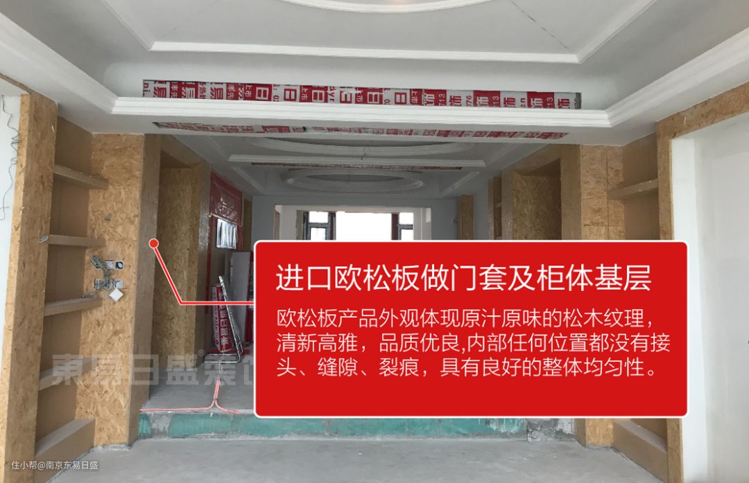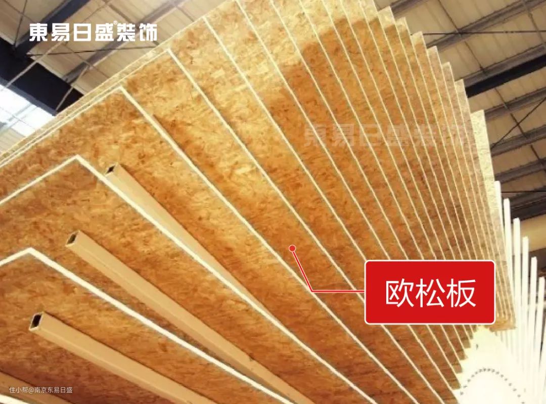 欧松板执行的是欧洲E1级环保标准,是目前市场上最高等级的绿色板材,我们东易日盛的木作材料用的就是欧松板。
