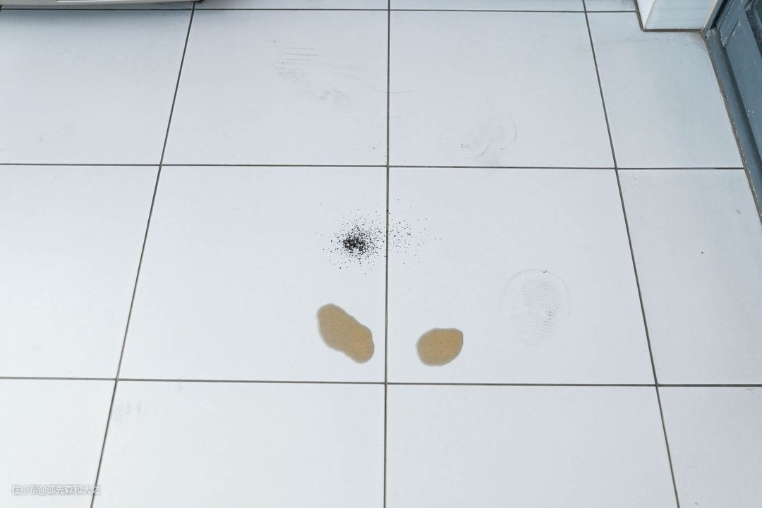 为了验证效果,我给地上倒了个茶包(黑色茶末)和水醋,我们一起来看看效果。