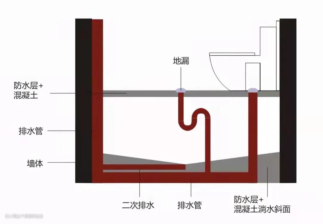 施工时在底层靠近公共排水管的位置做好排水坡,设置好排水口,这样就算出现渗水情况,也不会渗透到楼下。
