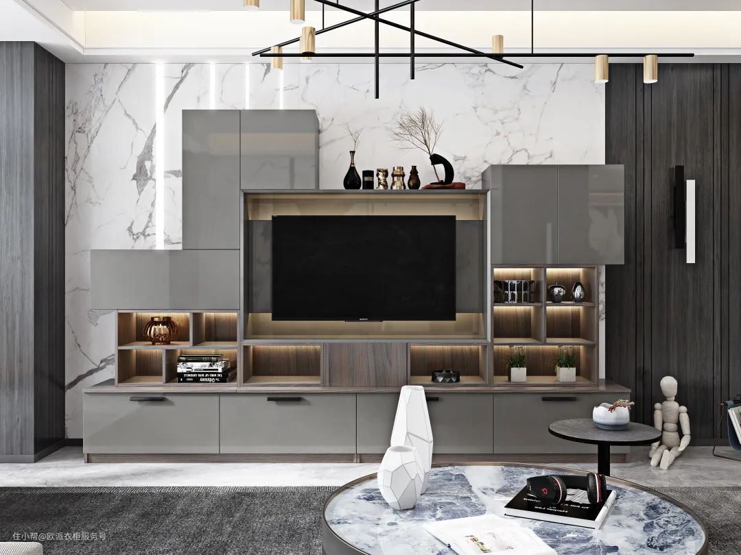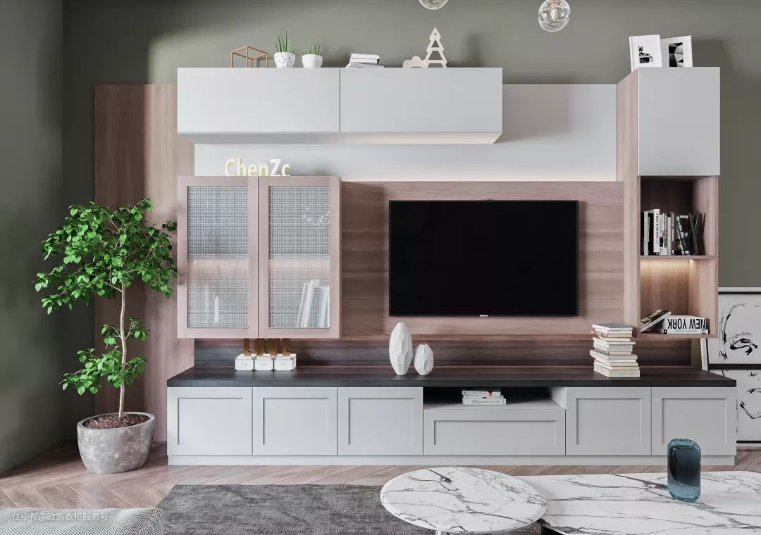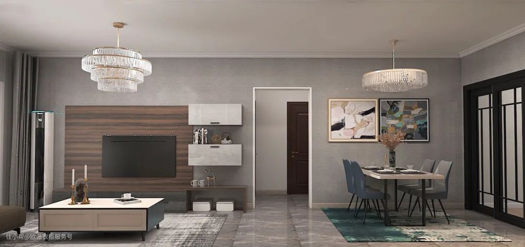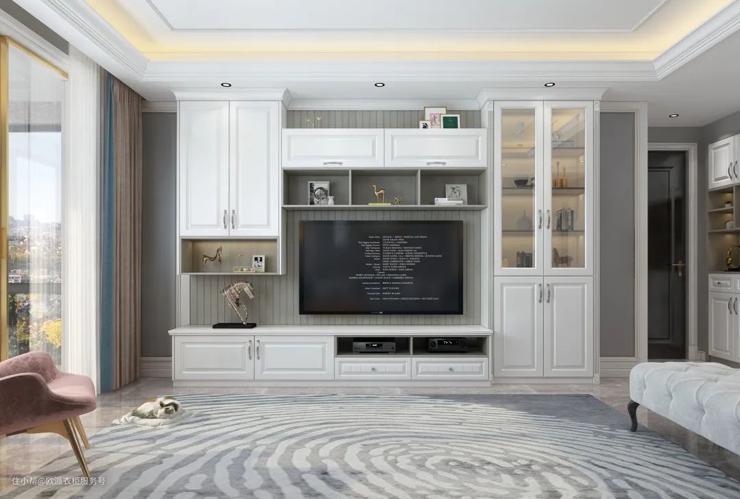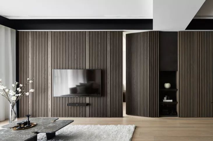 喜欢简约风的朋友们可以瞧瞧护墙板+石膏板的设计,可简约可繁复、可条纹可镂空,呈现简约却不简单的效果。就连电视内嵌入墙也能轻松驾驭,是装饰界可盐可甜的冠军本军。