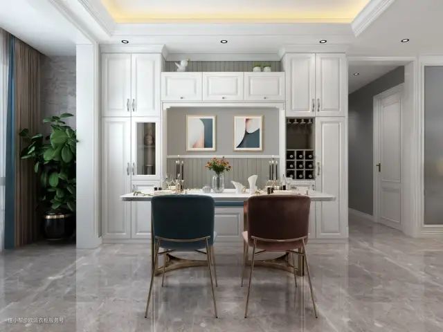 那就给餐厅加个护墙板试试吧。它在视觉上,把餐厅同其他空间进行了过渡,入眼更加自然,更能实现与地板、周围柜子材质的梦幻联动!