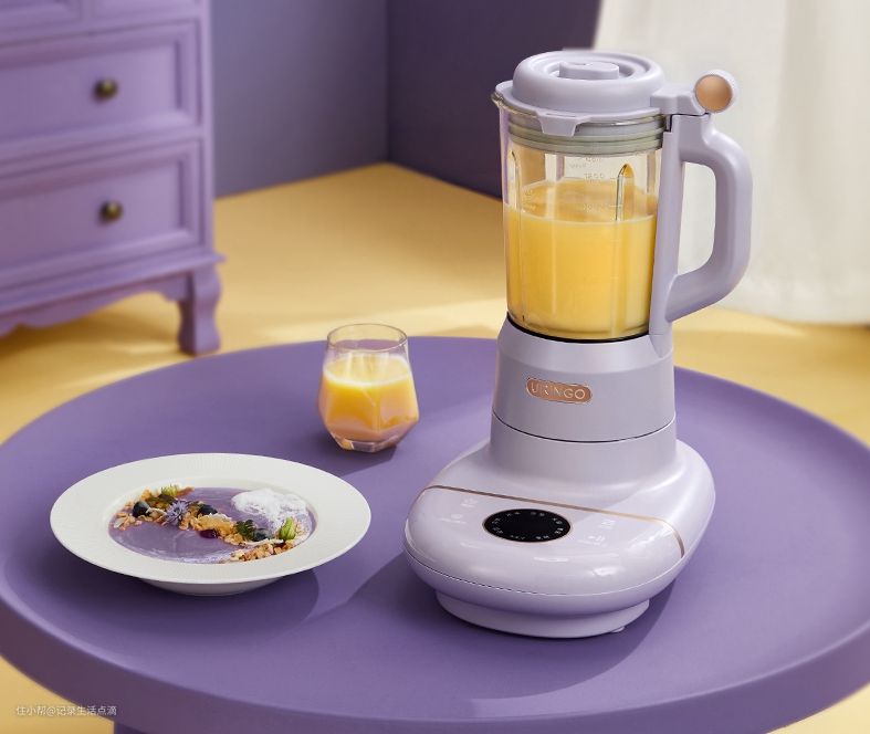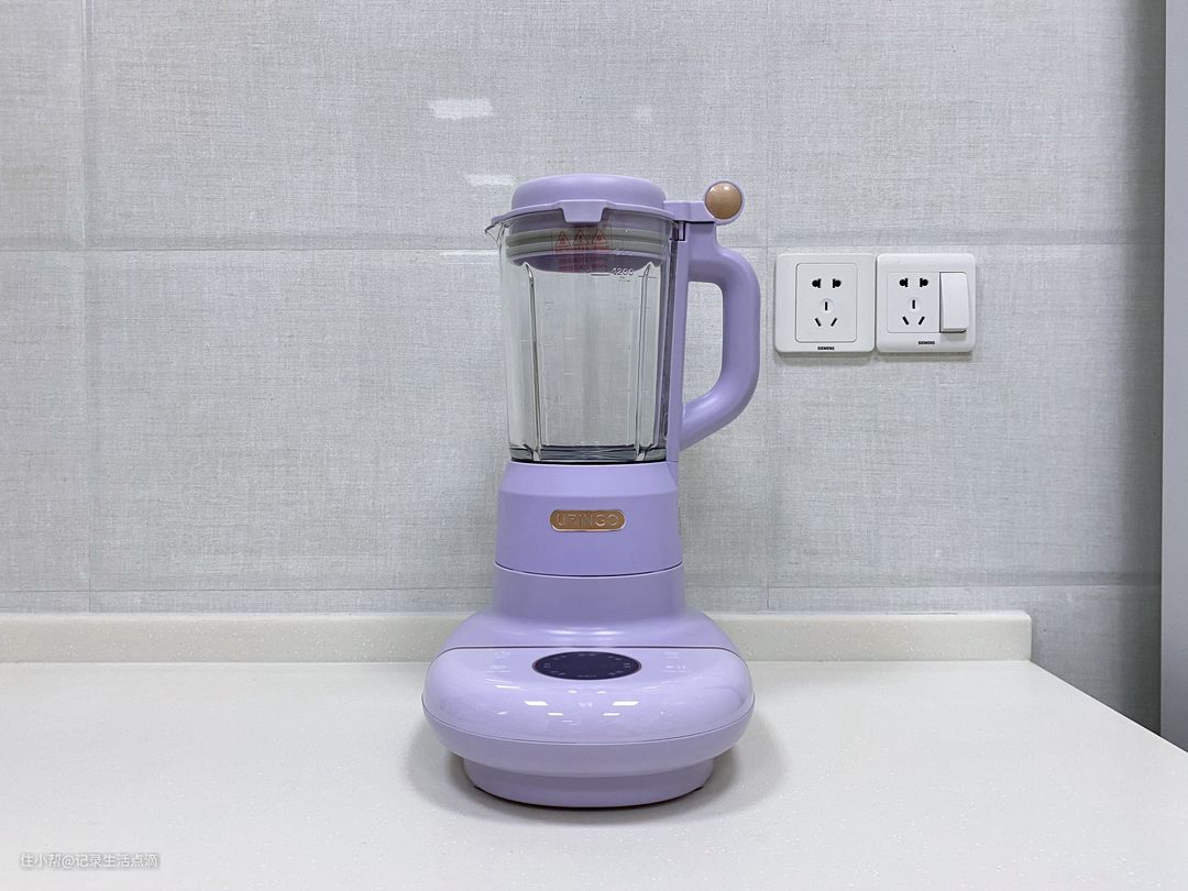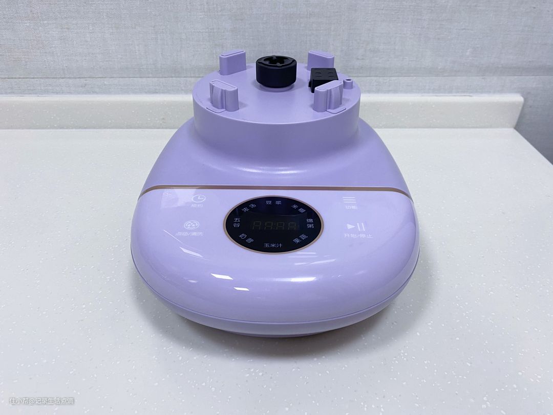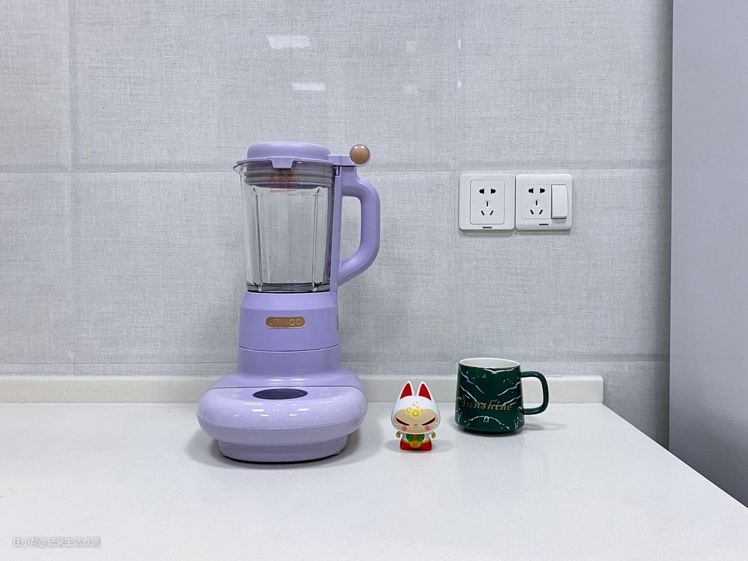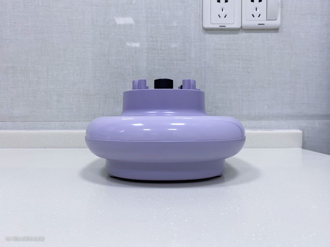 七彩叮当破壁机的外观设计与传统破壁机有所不同,它并没有体积庞大的底座,反倒给人一种轻巧的感觉。这款破壁机采用了时下很火的芋泥紫色,至少在外观颜值上还是比较受年轻人喜欢的。