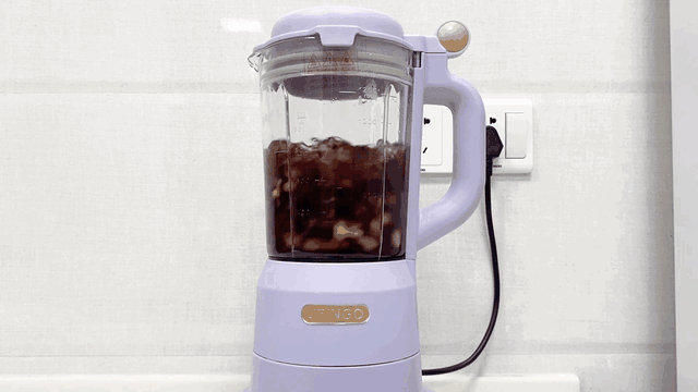 破壁机有专门的五谷模式,和浓汤、豆浆、米糊、绵粥、玉米汁这几个模式一样都属于热饮破壁,破壁机工作时先会进行加热,然后间断性地进行搅拌。给大家看看元气五谷浆制作时的搅到过程,在刀头每分钟几万转的搅打下,食材可以被彻底打碎,实现破壁效果。