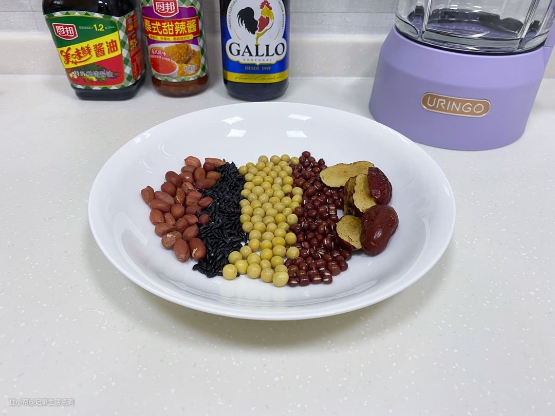 喝腻了豆浆可以来个元气五谷浆,我基本会选用花生、黑米、黄豆、红豆、红枣这五种食材,这个元气五谷浆营养价值可要比豆浆高多了,作为早餐的一部分再好不过了。