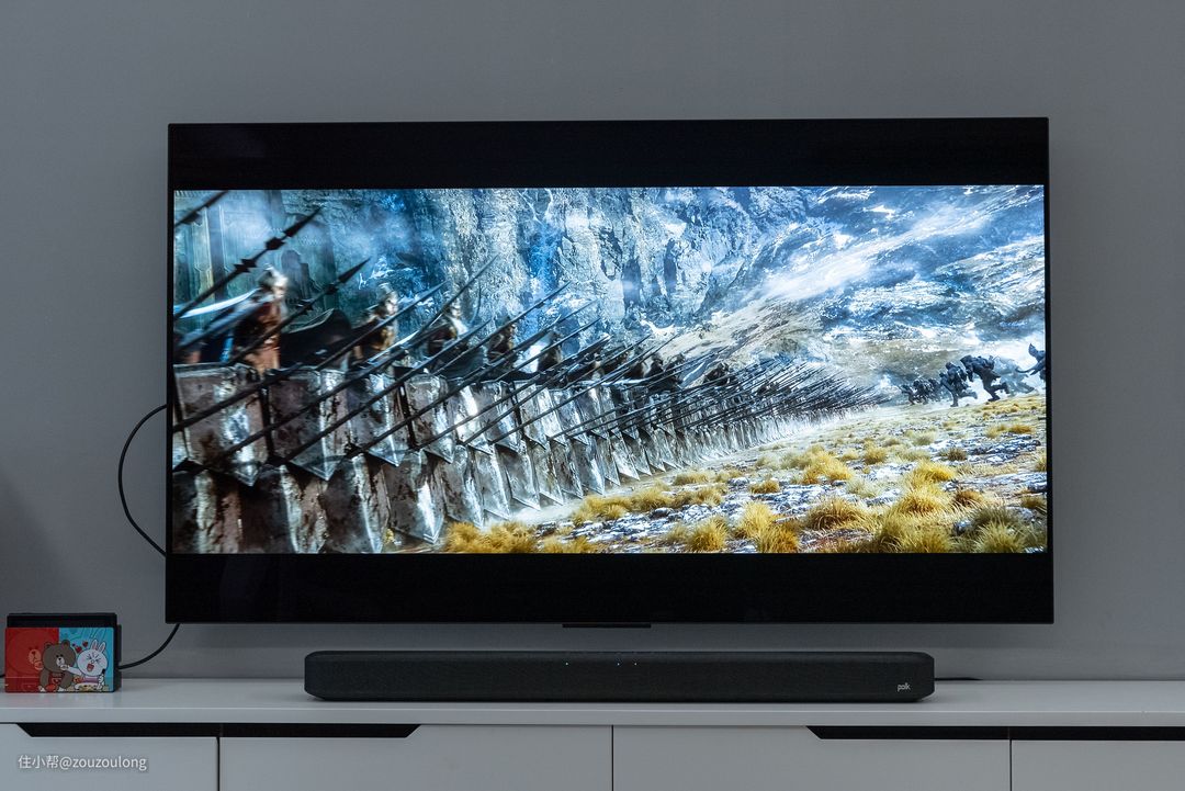 对于普通消费者而言,回音壁带来的立体声效相比电视还是很直观的。在用上Polk 普乐之声TSIII 回音壁打开声音切换后,立马能感受出来连接成功了。相比电视自带音箱,声音密度高了很多,细节感也更丰富,看电影刷剧的立体声效沉浸感很突出,这让老婆不禁跟我吐槽,早知道回音壁就能有这么出色的声效表现,就应该直接选回音壁的。