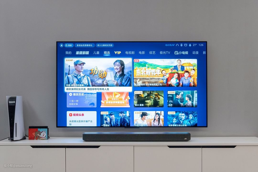 比如客厅现在网上都流行投影仪、激光电视,但投影仪需要配合家庭影院不仅花费更多、工序繁杂,还需要家里配备独立影音室的环境。激光电视更是动不动就几万块,还需要配合抗光屏。而一台大尺寸电视就会很便宜,几千块钱就能搞定,关键客厅白天播放效果更好,智能系统使用操作方便,真香。