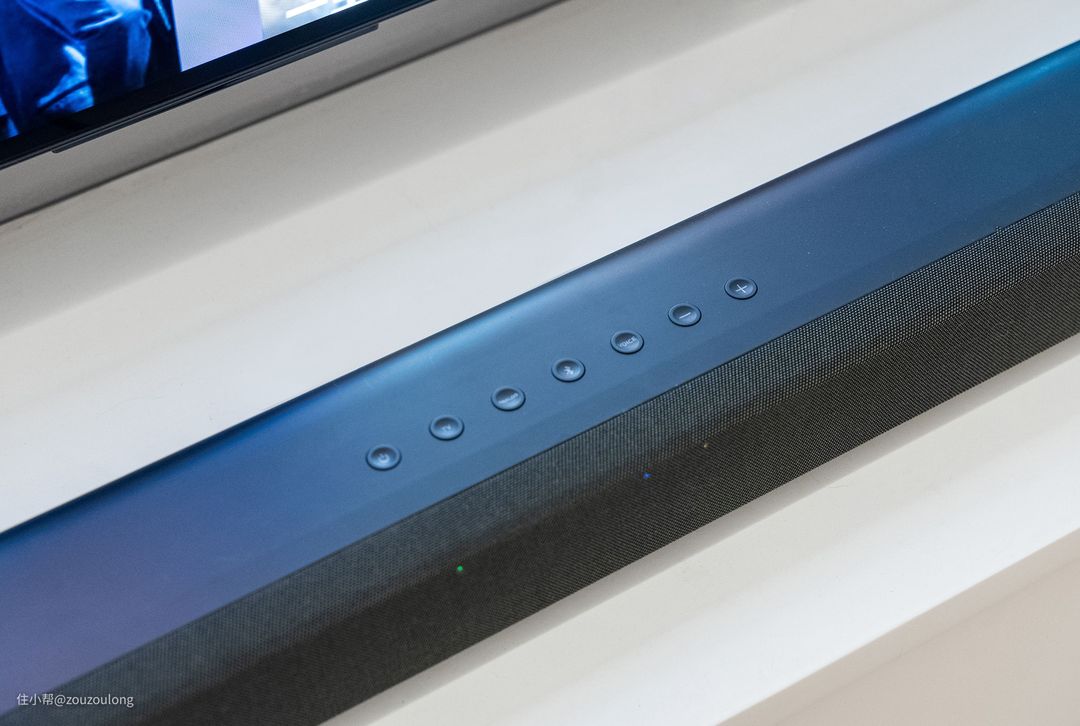 而且环绕音箱和无线低音炮的连接状态也可以通过对应指示灯在条形音箱上直观查看,条形音箱的响应状态也可以通过前方小指示灯进行观察。