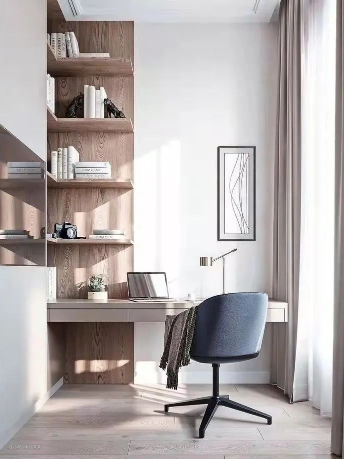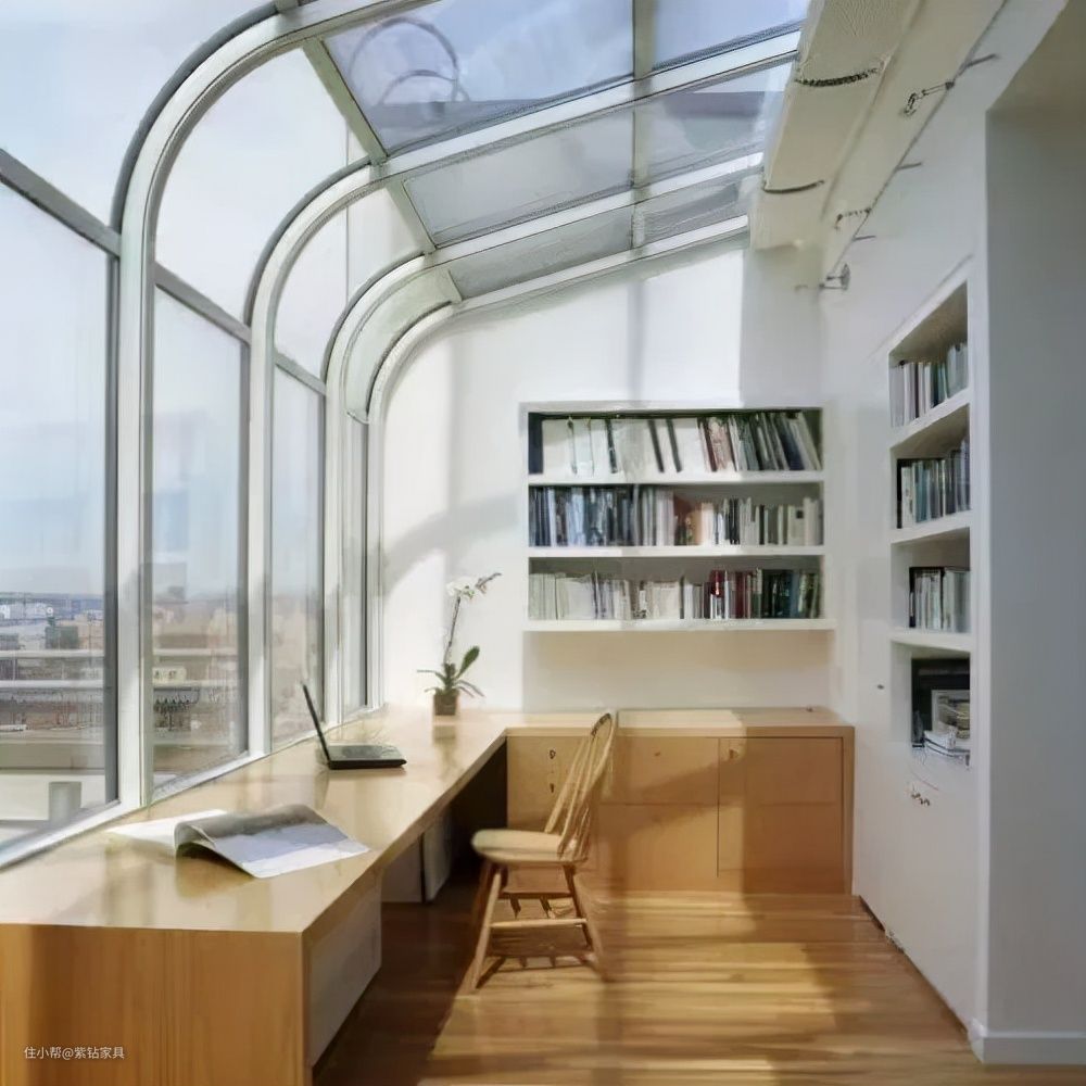 之前讲阳台的文章就说过,因为采光良好,阳台是可以改书房的。