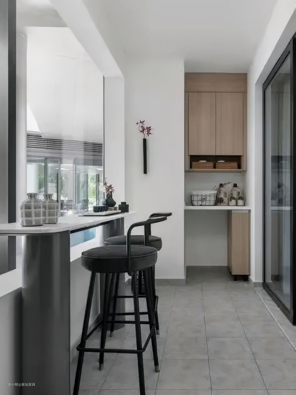 再摆两张椅子、一张茶几,或者沿窗做一个吧台,顿时变成了喝茶/品酒休闲的小天地。