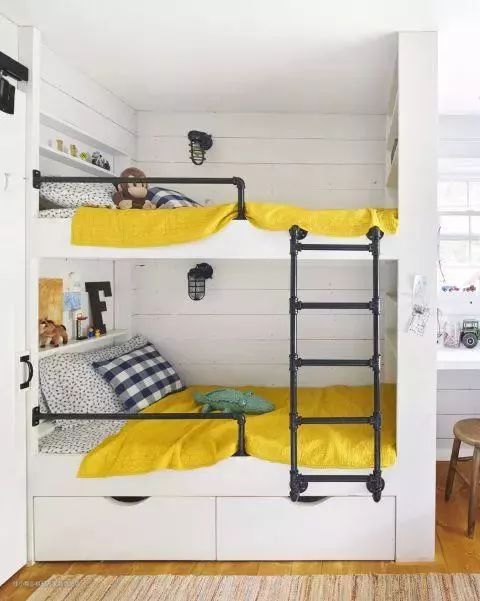 ②上下铺增添趣味性;要说能拥有上下床,有哪个小孩不为之快乐呢!爬上爬下是孩子的秉性,像上下床的情况这么灵巧,分分钟会变成孩子的乐园,让孩子在上面找到无尽的乐趣!